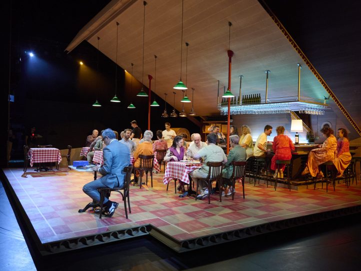En el terreno escenográfico por el que deambulan tutti quanti circula por el escenario, es meritorio el trabajo realizado por cuanto realismo acertado constituye toda la creación escénica de Alfons Flores. Resulta talla verosimilitud que la pizzería bien podrá estar ubicada en un centro de alimentación que hay en nuestras calles.