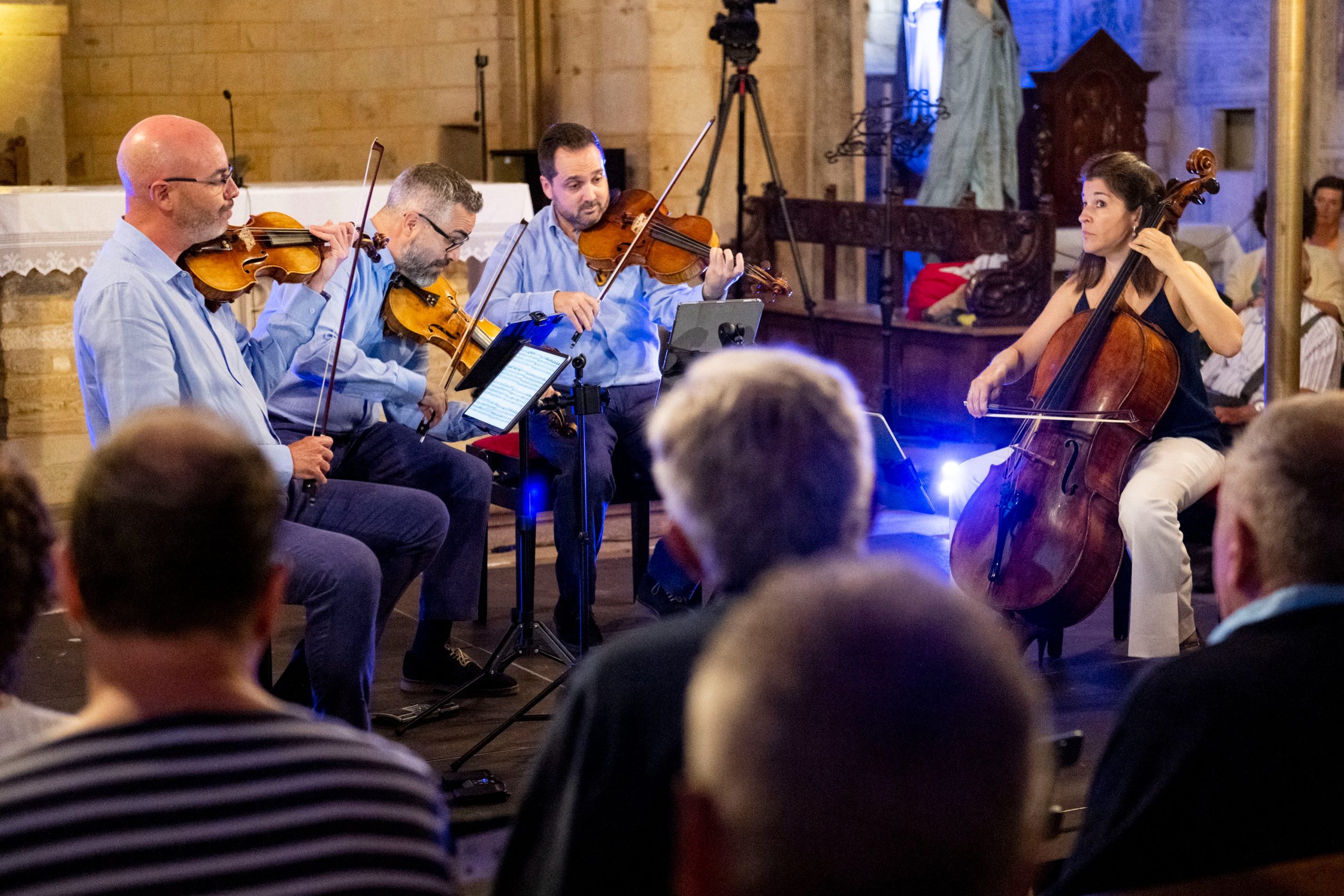 Dos días más tarde, en la Basílica de San Martiño, nos sumergimos en otro orden de bellezas, en este caso cuartetísticas de la mano del Quiroga, que siempre pone una pica en Flandes por su calidad, acrecida año a año (y ya son 20) y por su entendimiento, caluroso y diáfano, de los pentagramas más variados. En este concierto, que, como sucedió el día anterior con el de la Pires, se repetía ante la avalancha de solicitudes, los cuatro integrantes de la formación, Aitor Hevia, Cibrán Sierra, Josep Puchades y Helena Poggio, volvieron a demostrar en estas tierras su plenitud: sonido compacto, líneas claras, voces medias siempre presentes, unidad y sentido de la forma.