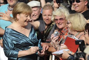 Se inauguró Bayreuth con “El holandés errante”. Angela Merkel cumplió con la tradicción asistiendo a la gala. Parecía una actriz firmando autógrafos. Como la cosa creía que iba de mar quiso dar un aviso a navegantes: “austeridad como yo. Recortad gastos y aprovechad el fondo de armario”. Pero, por las fotos, ya ven que la cosa no iba de mar, sino de sociedad materialista y de consumo frente a sociedad espiritual y fantasmagórica. Samuel Youn resolvió la papeleta, pero muy lejos de los grandes bajo-barítonos que han cantado el papel en la colina sagrada. Gracias, señor Thielemann, por su impresionante lectura.