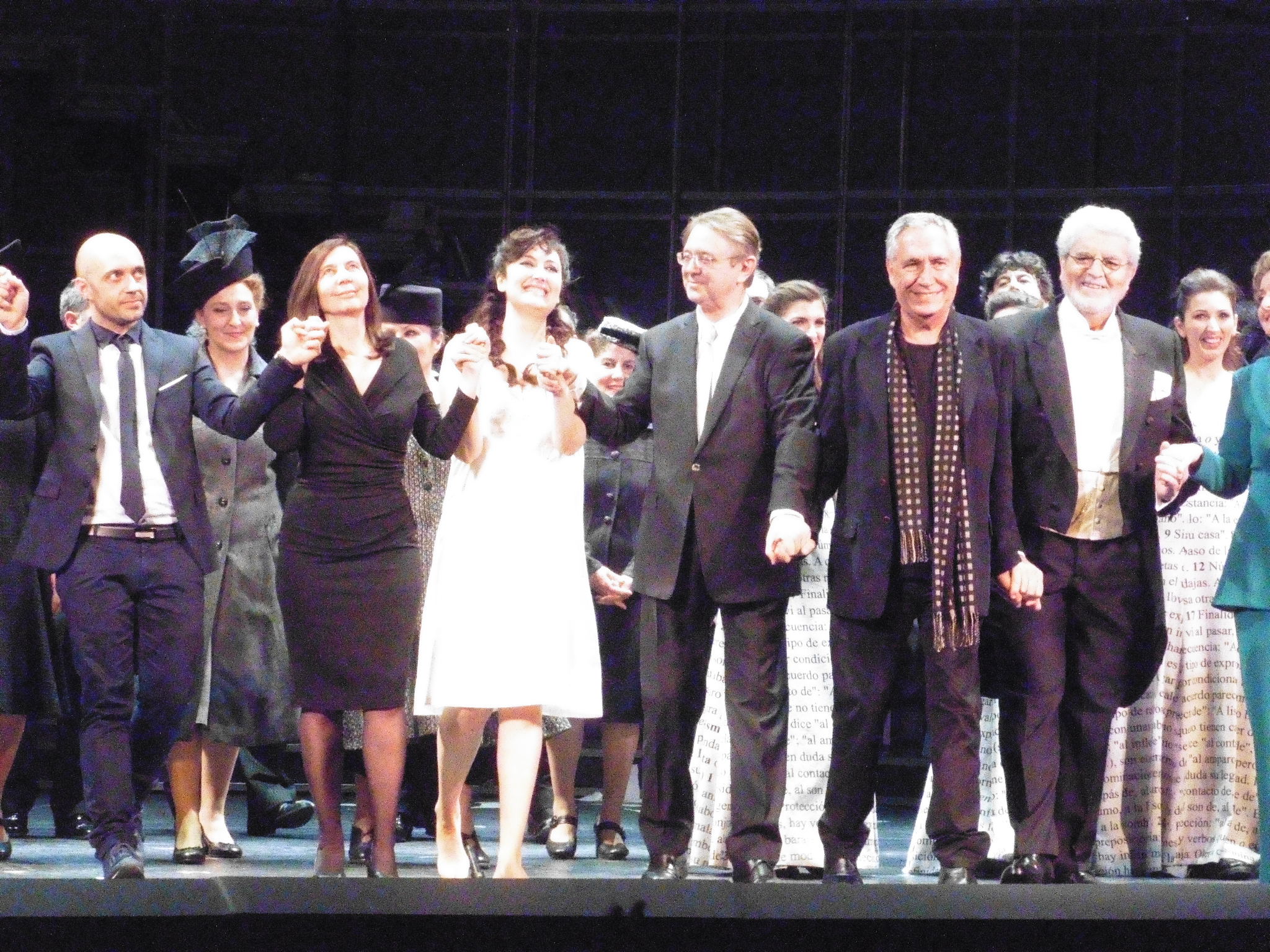 Hay escenas teatralmente admirables; un reparto de lujo, en el que la gran mezzo María José Montiel se vacía para encarnar ese heroísmo tan femenino consistente en la generosidad máxima desde el ostracismo, Montiel proporciona terciopelo vocal y temperamento y si alguien puede hablar de éxito, es ella; una orquesta y un coro bien llevados por Víctor Pablo Pérez, muy seguro al frente de su propia orquesta, la ORCAM; un reparto equilibrado, del que destacan José Julián Frontal, como marido de María, Sandra Ferrández, Celia Alcedo, María José Suárez y Lola Casariego, en los papeles de esas otras mujeres que nunca llegaron a la RAE en una España obtusa, o el bien conocido Juan Pons como académico de la RAE casposo y taimado; hay también que señalar una música muy bien ajustada cuando acompaña, Parera Fons tiene un oficio sólido, gusto por las reducciones camerísticas de la orquesta que le dan muchas posibilidades expresivas, solo le falta ser el dueño de la dramaturgia lo que casi convierte su aportación en una música incidental de altos vuelos.