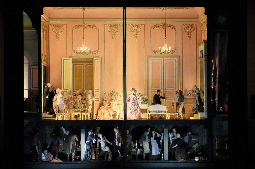 Philipp Stölz se ha apuntado a dividir el escenario en pequeños cuadros, lo mismo que en Salzburgo con Cavalleria y Payasos, dentro de una producción de concepto tradicional. Casi siempre dos o tres niveles con, a su vez, dos otras cuadros por nivel. Arriba la vida de los de “arriba” -los ricos o los amos de la revolución- y abajo la de los de “abajo” los pobres o los soldados heridos-, como expresaría algún partido político populista. Plantea tres inconvenientes: no se ven todos desde todos los asientos del teatro, el espectador se distrae no sabiendo a donde mirar y las grandes escenas quedan abigarradas y empequeñecidas. Mucho mejor la producción de la Bastilla, vista también en el Real. Hubo por ello bastante división de opiniones en los caso veinte minutos de vítores finales. El día 18 se retransmitirá en stream desde la web del teatro. Gonzalo Alonso