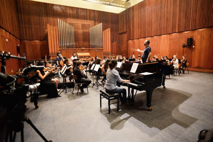 Grabación de la Orquesta Sinfónica de la Universidad de Aveiro en Portugal. (Foto: Luis Mena)