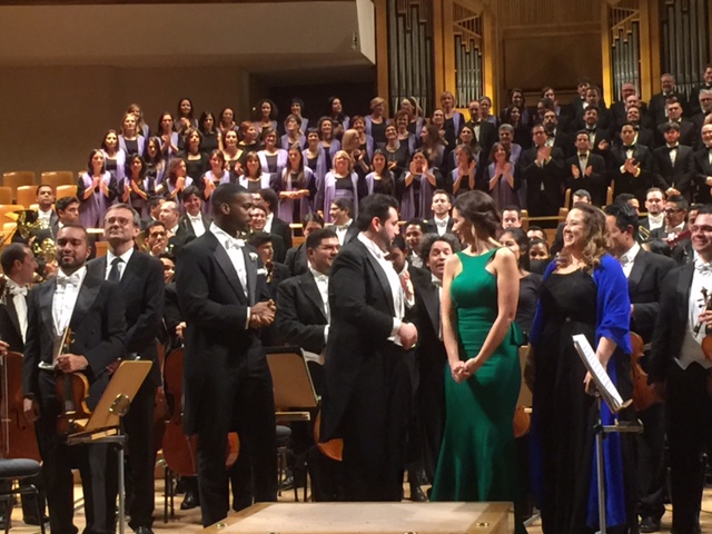 El protagonista indudable es el coro, que se enfrenta a una partitura mastodóntica en términos de dificultad por cuanto son muchos los lugares descubiertos, las exigencias contrapuntísticas o las entradas susurradas. El reto se superó con nota, con una cuerda de tenores excepcional y sin apenas advertirse las costuras de la mezcla de los dos coros que había en escena, el de la RTVE y el de la ORCAM. Su cuidado fraseo y pronunciación diáfana se ajustaron a la perfección al discurso trascendente que proponía Gómez-Martínez. La orquesta rindió a buen nivel, más allá de algunos desajustes de afinación en el viento-madera o unas breves discrepancias rítmicas en los timbales que no acarrearon mayores consecuencias. Cumplió con creces el barítono José Julián Frontal, con una voz bien proyectada y un sentido dramático muy adecuado, lejos de cualquier exceso o búsqueda de protagonismo. Menos acertada (por afinación y sobreabundancia de vibrato) anduvo Isabel Monar en su breve intervención. El público respondió con moderado entusiasmo al rendimiento de la orquesta y ovacionó merecidamente al conjunto de los coros. Mario Muñoz Carrasco