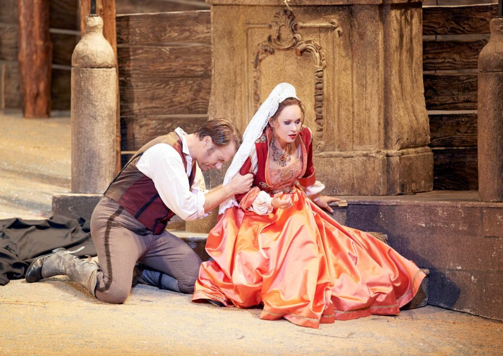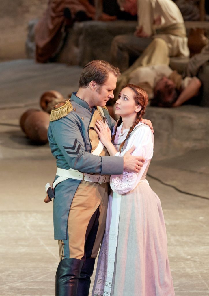 Don José era el tenor americano Brandon Jovanovich. Tenía curiosidad por verle cantar de nuevo, ya que no le había visto en escena desde hacía 6 años y precisamente como Don José en el Liceu. Entonces no me convenció y me llamaba la atención que en los últimos años hubiera a cantado habitualmente en teatros de primera fila. Tras verle ahora, me reafirmo en mi impresión anterior. Su Don José resulta más o menos adecuado para el dramatismo de los dos últimos actos, pero ofrece muy poco interés tanto en el dúo con Micaela como en una Romanza de la Flor, donde el SI que corona el a ria fue un filado fingido, ya que aquello sonaba a falsetón. Sin duda, le tiene que haber ayudado el físico a hacer la carrera que ha hecho.