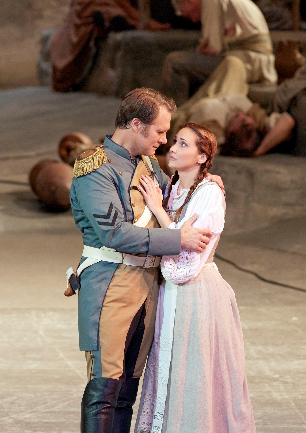 La soprano rumana Cristina Pasaroiu me resultó una decepcionante Micaela, aunque quizá sea yo el único espectador de la Staatsoper que piense así. Es una soprano muy ligera, demasiado para Micaela, totalmente ayuna de graves y con un centro un tanto reducido. Me resulta increíble que haya podido cantar en escena Adriana Lecouvreur, la Rachel de La Juive e incluso la Valentine de Hugonotes. A mí me pareció una voz de Barbarina.