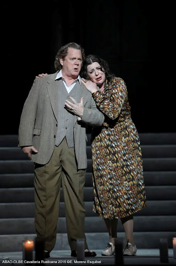 La auténtica protagonista de la ópera es Santuzza, no en balde está en escena casi toda la opera, y más todavía en esta producción. La elección de Daniela Bacellona para el personaje me parece bastante poco afortunada. Esta mezzo soprano italiana nunca ha tenido una voz excepcional en calidad tímbrica, aunque sí amplitud y facilidad en agilidades, habiendo sido una de las cantantes rossinianas de referencia en los últimos años, especialmente en las óperas del llamado Rossini serio. Santuzza es otra cosa muy distinta y Daniela Barcellona poco tiene que ofrecer de interés en el personaje. Aquí no hay agilidades, en las que siempre ha destacado la italiana, y, por otro lado, su voz está bastante destemplada en la zona alta. Es de agradecer su entrega, escasamente servida por la dirección escénica, pero Santuzza requiere otra voz.