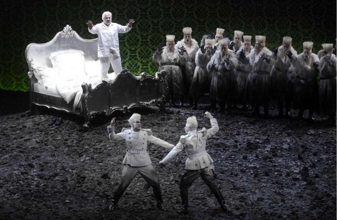 La dirección de escena resulta bastante tradicional y, únicamente, resulta poco convincente el aire bufo que da al acto del Café Momus, en el que el movimiento permanente de unos camareros, que no paran de hacer acrobacias, también acaba por distraer. El homenaje a la pintura se extiende también a la escena, con la presencia de las bailarinas de Degaz.