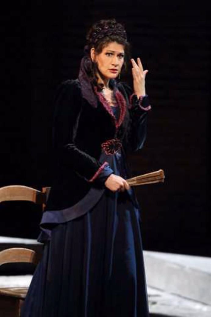 Como digo más arriba, se reponía la producción de Luc Bondy, cuyo estreno en el Metropolitan trajo consigo el escándalo, al sustituir a la antigua producción de Franco Zeffirelli, tan amada en la ciudad de los rascacielos. La verdad es que esta producción puede gustar más o menos, pero difícilmente puede provocar un escándalo. Se trata de una producción tradicional. La escenografía de Richard Peduzzi no tiene la espectacularidad de otras, pero sigue fielmente al libreto. Una Iglesia un tanto pobretona en el primer acto, el Palacio Farnese en el segundo, aunque podría ser una habitación de un hotel, ya que los lujos eran más bien escasos, y, finalmente una terraza elevada en una fortaleza, aunque falta el famoso Ángel. El vestuario de Milena Canonero responde a la época del libreto y resulta adecuado, particularmente en lo que se refiere a la diva. Se echa en falta la presencia del crucifijo y los candelabros en el final del segundo acto. En resumen, una producción clásica y tradicional, menos espectacular que otras y corta de brillantez en muchos momentos.