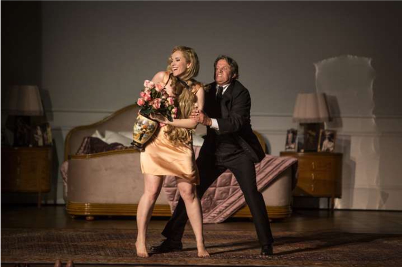 La Deutsche Oper ha vuelto a poner en escena la producción del ya desaparecido Boleslaw Barlog, que llega con ésta nada menos que a 393 representaciones. Ha cumplido la cifra espectacular de 49 años y bueno será recordar que en su estreno Tosca fue la siempre recordada Pilar Lorengar. Un auténtico prodigio de longevidad. Estamos ante una producción de las que hoy no se llevan, es decir escenarios realistas, vestuario de la época en la que se desarrolla el drama y ni la más mínima provocación. En la escenografía de Filippo Sanjust no falta nada: la Madonna en una columna (como dice el libreto), la pila y la capilla en el primer acto. Por supuesto, el crucifijo y los candelabros en el segundo, y, finalmente, la terraza, el ángel y la vista a lo lejos de San Pedro del Vaticano en el tercero. El vestuario lleva la firma del mismo Filippo Sanjust y es el visto tantas veces, destacando el de Floria Tosca, que fue estrenado hace casi 6 años para el debut de Anja Harteros en el personaje. Una producción del mayor de los clasicismos, especialmente recomendada para nostálgicos, aunque no tiene el brillo de las de Franco Zeffirelli.