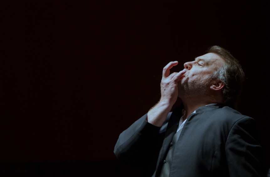 expresividad y simpatía. A continuación interpretó el aria del Mefistófele de Arrigo Boito, en la que resultó particularmente divertido, haciendo una auténtica exhibición de silbidos, invitando al público a imitarle, con lo que acabó ya de metérselo en el bolsillo. Terminó la primera parte del concierto con el arioso de Falstaff sobre l’onore, donde hizo una gran composición vocal e interpretativa.