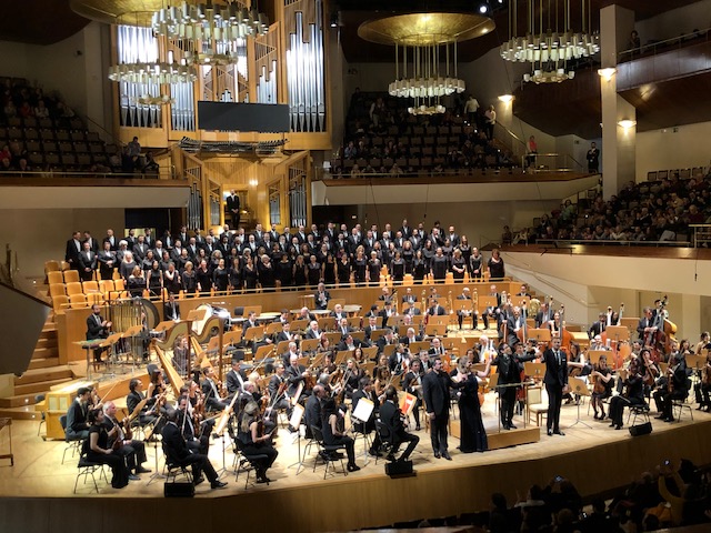 Salió Javier Camarena y nos contó que se sentía congestionado, pero que las cuerdas estaban bien. Le ha sucedido en otros lugares de su gira de tres semanas. Simpático, ya se metió al público en el bolsillo. Cantó muy bien “Salut! Demeure chaste et pure” de Gounod, “Vainemente, ma bien-aimée” de Lalo, la comprometida “Seul sur la terre” de Donizetti, con exhibición de filados y medias voces a pesar de percibirse su afectación vocal, para coronar con los nueve “does” de “La hija del regimiento”. En total cantó diecisiete minutos, descontando los muchos aplausos -ovación interminable tras la última- y la pausa tras las primeras dos piezas. Camarena ya había superado el record del último recital de Alfredo Kraus en el mismo Auditorio, de una duración escasísima. Se aplaudió mucho también al pianista acompañante, Ángel Rodríguez, quien más parecía dirigir una orquesta que tocar, dada su peculiar exuberancia gesticular intentando dibujar la música con las manos cuando soltaban las teclas. Un poema, por más que estuviese sutil y muy compenetrado con el tenor.