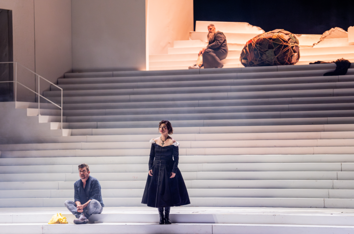 El tercer acto, con el enfrentamiento entre Felipe II y el Gran Inquisidor, se resuelve en un espacio casi desnudo, lo que obliga a centrar la atención en la interpretación vocal. Gran punto el presentar al Gran Inquisidor como un ciego, con su bastón.