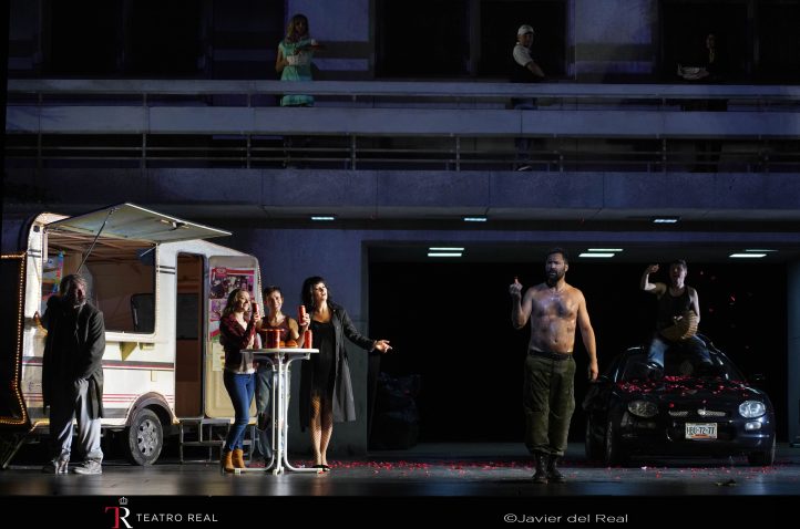 En lo musical, César Belda dirigió a un conjunto instrumental formado por dos pianos, contrabajo, flauta, timbales y amplia percusión con firme sentido del ritmo y de los cambios de dinámicas. De la mano de Belda fueron también las piezas corales iniciales escritas al estilo Orff. Brillante el resultado sonoro conseguido y el equilibrio logrado con el coro y las voces solistas. Coro, por cierto, de dieciséis voces muy empastadas y con gran soltura escénica. El estupendo sistema de amplificación del Cartuja Center permitió que todo sonase con naturalidad y nitidez.