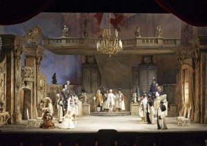 La producción escénica de la Staatsoper no es otra que la muy conocida y bellísima de Otto Schenk, que con ésta llega a las 363 representaciones desde su estreno. Si no es un récord absoluto, poco le puede faltar. Su estreno tuvo lugar en 1968, lo que significa que cada uno de los 47 años transcurridos desde entonces ha visto un promedio de 8 veces esta producción. Está claro que forma parte de la Staatsoper de Viena y me atrevería a decir que de la propia ciudad, ya que a lo largo de estos años todas las grandes figuras de la lírica han pasado por esta producción.