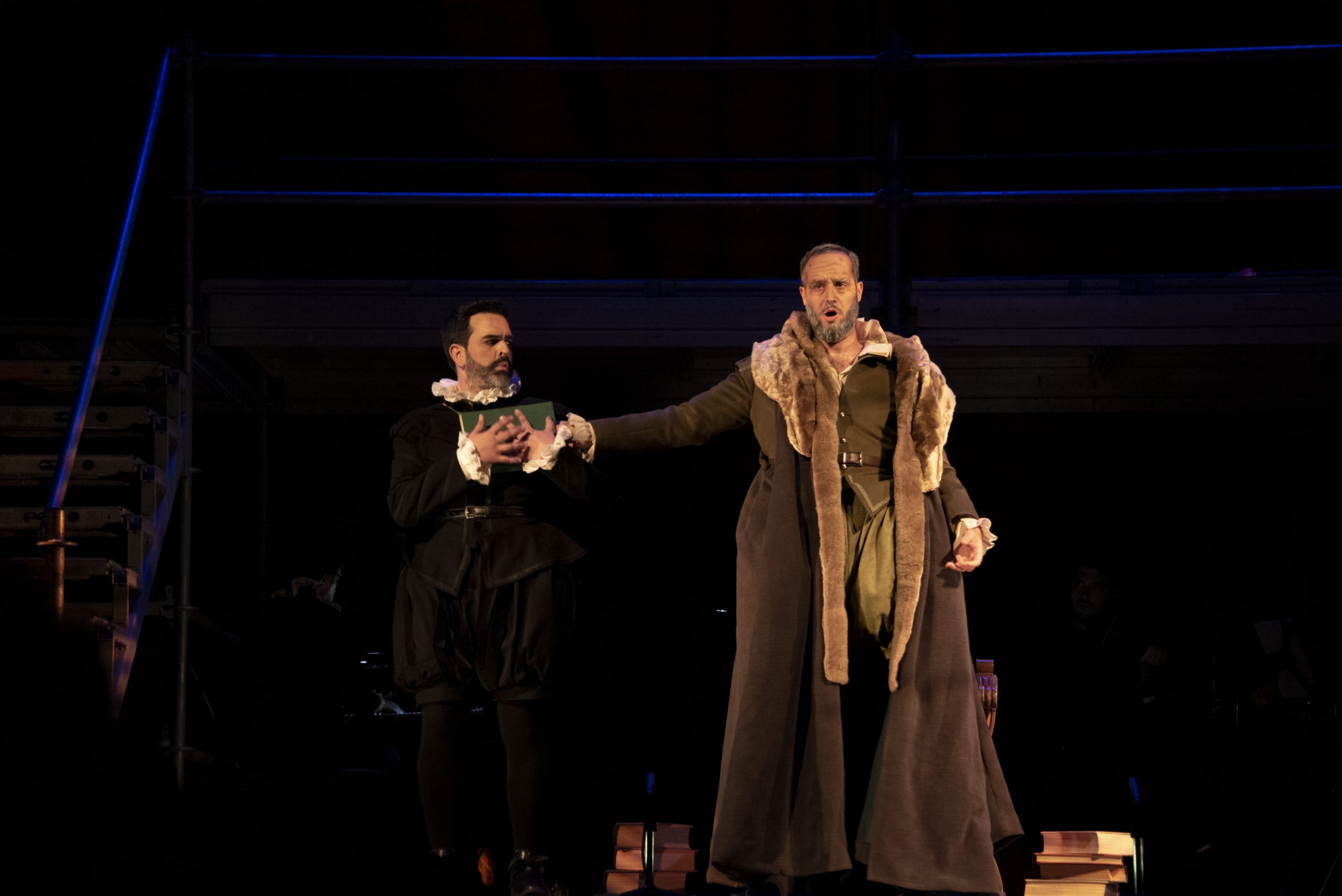Don Diego de Granada es un viejo proyecto nacido hace casi veinte años a partir de un texto del poeta granadino Antonio Carvajal (Premio Nacional de Poesía), que recrea en clave poético-política la figura de Diego Hurtado de Mendoza (1503-1575), humanista, poeta, historiador y embajador al servicio de Carlos V y cuya impresionante biblioteca personal acabó formando parte de los fondos de la biblioteca de El Escorial en pago de ciertas deudas que el ingrato de Felipe II le exigió al final de sus días. El libreto, en un estilo que funde fragmentos del propio Hurtado con la poesía de Carvajal de manera que resulta difícil donde empieza la una y le sigue la otra, es de una musicalidad (como toda la obra poética de Carvajal) extrema, lo que ha supuesto un perfecto punto de partida para que Héctor Eliel Márquez componga una música de gran atractivo, que presenta guiños al Barroco (las variaciones sobre La folía de la obertura, imitación de Monteverdi) y a la tradición hispánica (Campanilleros, ritmos aflamencados, la caña bolera de Pauline Viardot). Y todo, viniendo de un director de coros como es el compositor, con una escritura muy medida y muy cuidada para las voces.