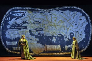 El autor de esta nueva producción es el cineasta italiano Leo Muscato, que hace un trabajo más interesante que el que ofreció en Parma con I Masnadieri. La escenografía de Massimo Checchetto resulta atractiva dentro de una gran simplicidad durante buena parte de la representación. En cuatro de los cinco actos el escenario está ocupado por una superficie inclinada, a la que se le añaden elementos de atrezzo para figurar las distintas ambientaciones. En el acto III el escenario figura un barco y está muy bien conseguido. De gran belleza el último acto, en el que la plataforma mencionada está muy bien iluminada por Alessandro Verazzi, figurando el mar, al que se añade un precioso árbol, del que la protagonista tomará el veneno que la llevará a su sacrificio. La acción se desarrolla en la época prevista en el libreto y cuenta con un adecuado vestuario de Carlos Tieppo, que resulta colorista en el acto IV, con atuendos tipo hindú para coro y figuración.