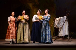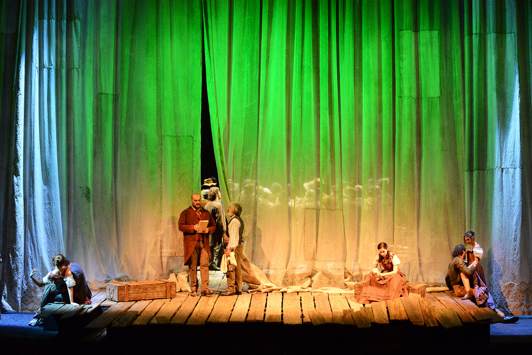 De la dirección escénica se ha encargado el gran Renato Bruson, que asumió también el rol del Pancione en las dos primeras representaciones de la ópera. Para mí la labor de Bruson ha sido lo mejor de la representación. Si el día anterior criticaba la falta de dirección de actores en I Masnadieri de Parma, aquí tengo que decir exactamente lo contrario. El trabajo que hace Renato Bruson con todos los cantantes es magnífico, una auténtica lección de cómo se debe dirigir escénicamente una ópera. Cada personaje funcionó perfectamente en escena y eso, teniendo en cuenta la juventud y falta de experiencia de los cantantes, no puede ser sino mérito del director de escena. Ha sido una auténtica lección de teatro, que harían bien en aprender muchos registas modernos. Renato Bruson ha demostrado que no hacen falta originalidades, sino conocer la ópera de arriba a abajo y trabajar a fondo con los cantantes. Fue un inmenso cantante y es un gran director de escena.