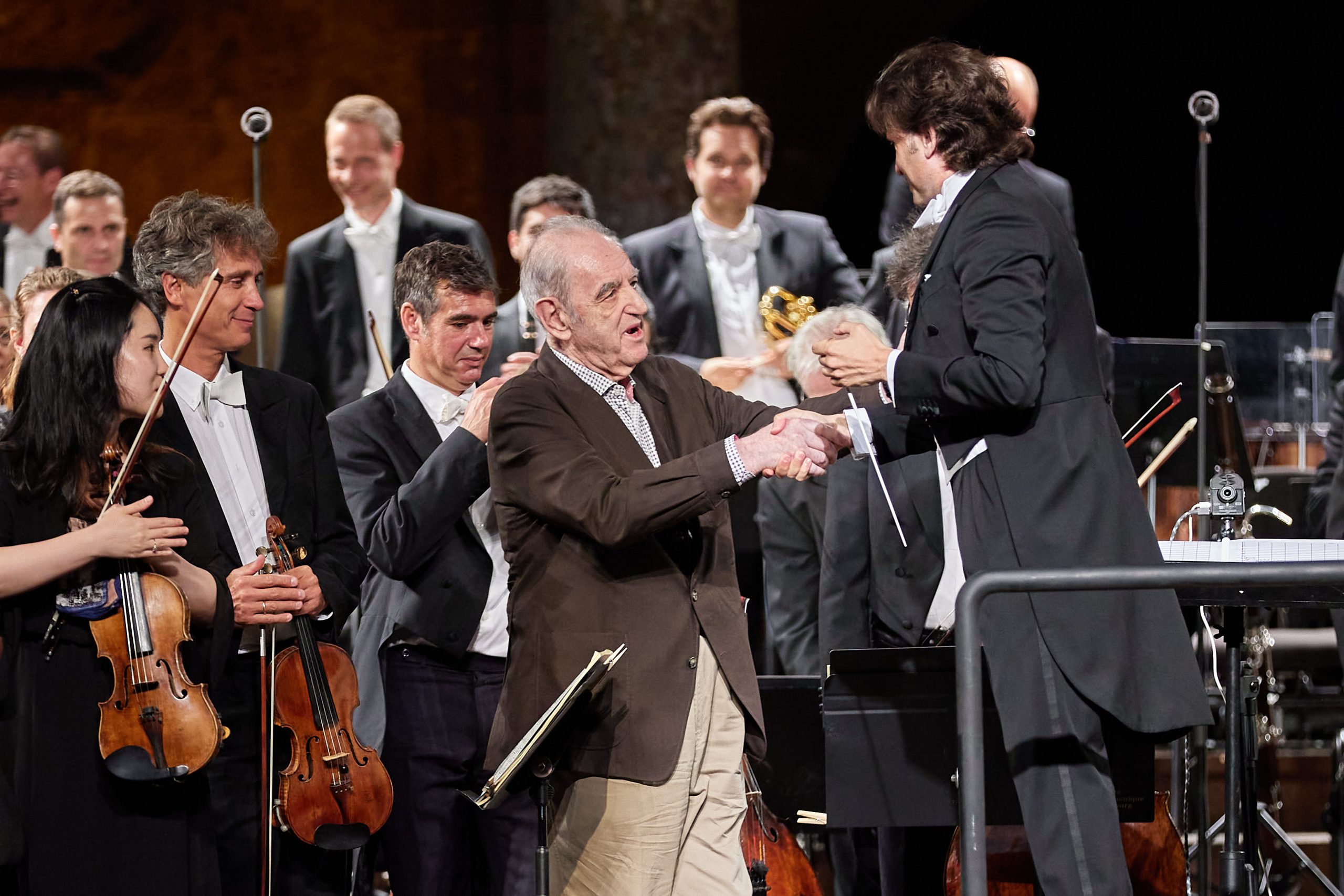 Tomás Marco con Gustavo Gimeno y la Orquesta Filarmónica de Luxemburgo © Festival de Granada | Fermín Rodríguez