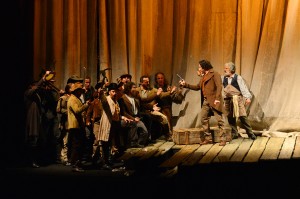 Lo más endeble del espectáculo es la dirección de actores, que resulta prácticamente inexistente. Es la primera vez que asisto a un espectáculo escénico de Leo Muscato, pero su trabajo me resulta de muy poco interés. Los cantantes quedan casi abandonados a su suerte, cortos de expresividad en los principales personajes, y hay añadidos de mal gusto en varios momentos de la representación, que ni siquiera llegan a provocar al respetable, por la poca credibilidad que ofrecen.