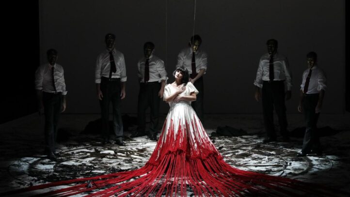 En este sintético comentario no podemos habar de todo el reparto, pero sí queremos destacar el limpio timbre de soprano lírica de Kateryna Kasper, igual, homogéneo, dotado de un metal de excelente calidad y de un brillo muy natural, espléndida en todas sus intervenciones, como en el arioso Numi, che il ciel. Fue una modélica Arianna. Su marido, el emperador Anastasio, fue la mezzo muy lírica Olivia Vermeulen, discreta y musical. El tenor Siyabonga Maqungo, fue un ligero de amplia vocalidad. Unas palabras para Mark Milhoffer, tenor ligero sin grandes brillos, que se exhibió en la parte final como caricato de acuerdo con el movimiento escénico propuesto no sabemos por quién y que va dotando de imaginería a las situaciones. Unas solución mixta y discutible, aunque menos aventurada que la de muchos montajes modernos. Mucho éxito final. Arturo Reverter