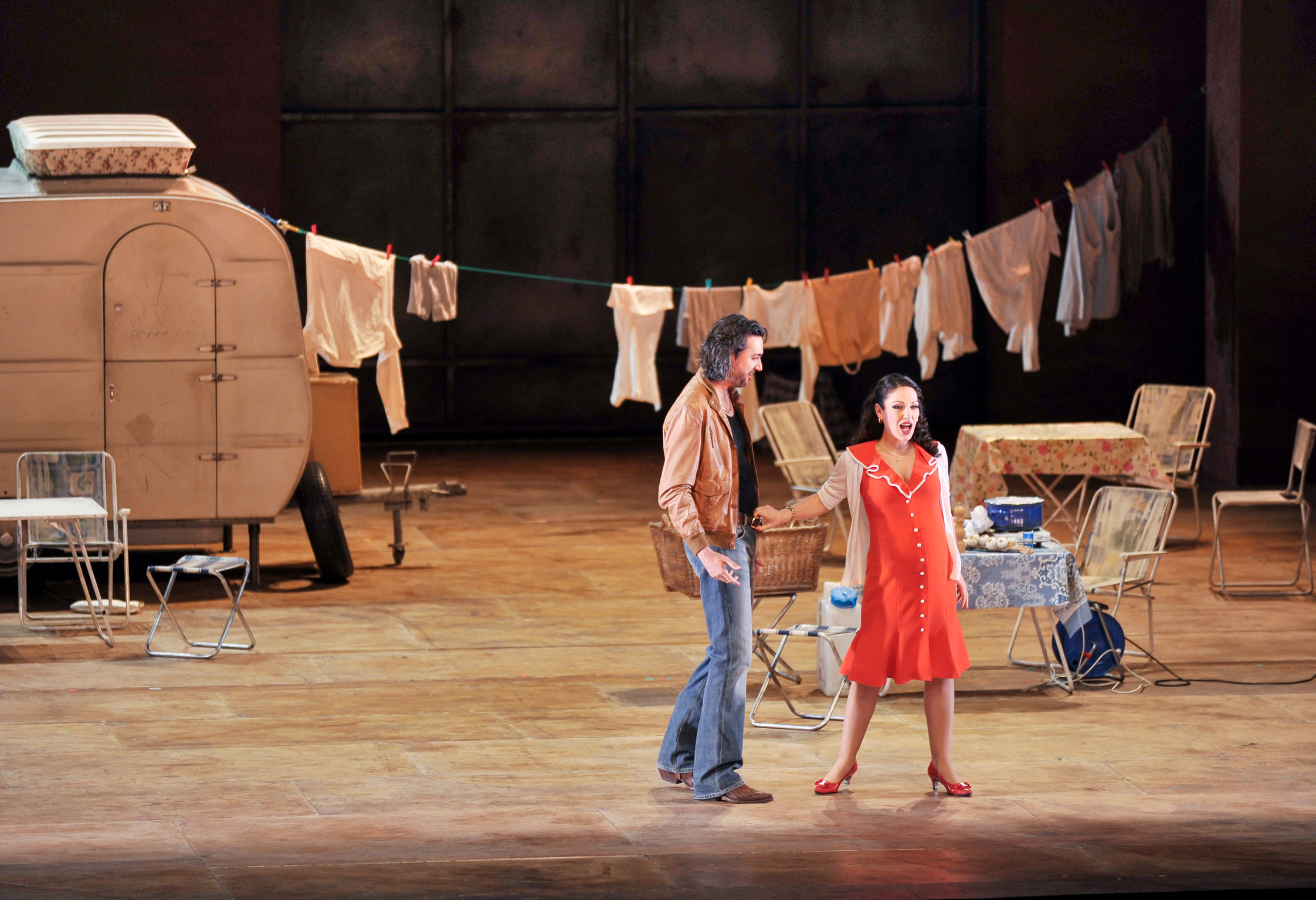 La producción escénica que ofrece el Liceu es la de Christof Loy, que procede de la Bayerische Staatsoper de Munich, donde tuve oportunidad de verla en julio de 2007. Guardo un magnífico recuerdo de aquella representación, que conmemoraba los 30 años del debut de Carlos Chausson en Munich. La mayor diferencia entre ambas ocasiones ha estado justamente en que Chausson no ha estado en Barcelona y le he echado muchísimo de menos, ya que su Don Geronio fue de no olvidar fácilmente.