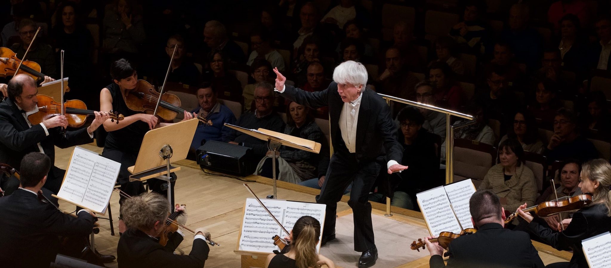 Y volvemos al principio. La segunda parte era la Sinfonía n.º 41 en Do Mayor, un monumento inabarcable que fue tratado con la mejor de las realidades tímbricas que puede ofrecer la ONE, que es mucha, a la que sumaron trompas y trompetas naturales. La flexibilidad que muestra la orquesta es admirable. Antonini propuso energía, expresividad y aristas, no por falta de cuidado en el sonido sino por no huir de los contrastes prescritos y sin atenuar el empuje en una sola repetición. Refinamiento en el “Andante cantabile”, luminosidad en el “Menuetto” y, tal y como comentábamos al empezar, toda la rabia precisa para encarar un último movimiento donde lo estructural (la fuga a 5), lo melódico y lo emocional se dan la mano. Conmoción y entusiasmo final para despedir un concierto magnífico con un repertorio brillante. Y también oscuro.