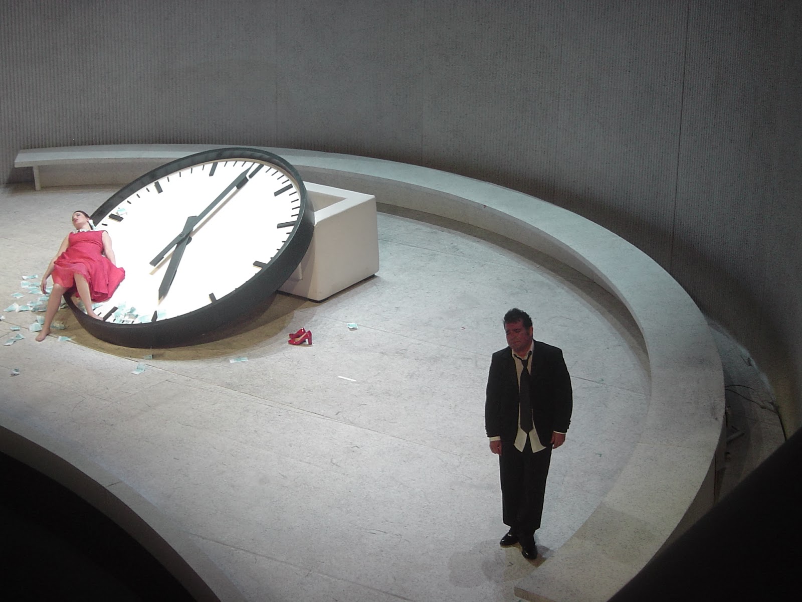 Para el archivo diré que el autor de la escenografía era Roland Olbeter, siendo el responsable de iluminación Peter van Praet. El creador de las video-proyecciones era Franc Aleu, debiéndose el vestuario a Chu Uroz. La dirección de esta reposición la ha llevado adelante Allex Aguilera.