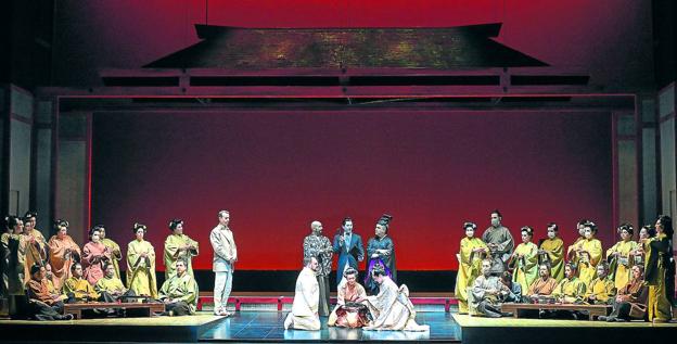 Fecha: 17-V-22. Lugar: Palacio Euskalduna, Bilbao. Programa: Madama Butterfly, tragedia japonesa en tres actos, compuesta por Giacomo Puccini, con libreto de Luigi Illica y Giuseppe Giacosa. Intérpretes: Maria Agresta (Cio-Cio Sam), Sergio Escobar (B.F. Pinkerton), Carmen Artaza (Suzuki), Damián del Castillo (Sharpless), Marta Urbieta (Kate Pinkerton), Jorge Rodríguez-Norton (Goro), Fernando Latorre (Tío Bonzo), José Manuel Díaz (Yamadori y Comisario), Gexan Etxabe (Yakuside). Coro: Ópera de Bilbao. Orquesta: Sinfónica de Bilbao. Director de escena: Stefano Monti. Director Musical: Henrik Masái. Producción: Fundazione Teatro Comunale di Modena.