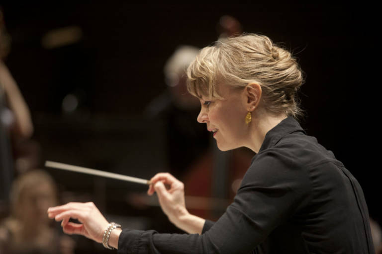 Ataviada con una eficaz vestimenta en forma de vestido/falda/pantalón/frac, impuso sobre cualquier otra circunstancia su condición de auténtica artista de la batuta: de intérprete que gobierna la orquesta desde la profesionalidad y una aguda sensibilidad. Admira la precisión y claridad de su gesto, de su pulso métrico, de su sentido nunca forzado de la expresión y de su naturalidad exenta de artificio. Ofreció así un Sibelius desalmibarado, transparente, limpio, en el que todos los detalles y modulaciones quedaban poderosamente de manifiesto, con claridad en las texturas y en los diferentes planos sonoros.