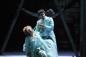Uno de los motivos del fracaso de esta representación estriba precisamente en la producción de Stefan Herheim, quien, al ofrecer su propia trama, acaba eliminando cualquier atisbo de emoción. El motivo central de la producción es el ansia de libertad de los protagonistas, que viene representada por la celebérrima Estatua de la Libertad de Nueva York, que se podía visitar en París antes de que Francia hiciera donación de la estatua a Estados Unidos en 1886. El arranque de la ópera no es, pues, la estación de postas de Arrás, sino los talleres de construcción de la Estatua de la Libertad, donde Des Grieux parece ser su autor y son muchos los visitantes, entre ellos Manón. La historia que narra Herheim poco tiene que ver con la del Abate Prevost o la de Puccini, puesto que parece que América es un sueño de libertad para los protagonistas, cuando realmente en la novela y en la ópera, Manón – y con ella des Grieux – son deportados en barco y no van en un crucero de placer, como pretende hacernos creer el señor Herheim. El noruego no tiene mejor idea que añadir un personaje más a la narración, que no es otro que Giacomo Puccini, quien dirige a los protagonistas y les señala los cambios que introduce en la novela de Prevost, que ellos casi siempre llevan en sus mano y parecen recitar. El problema es que Puccini interviene en la escena y así el Sola, perduta, abandonata no lo canta Manón íntimamente, sino que lo canta a Puccini en su despacho, muriendo en sus brazos. ¿Dónde? Se supone que en América, pero ni rastro de desierto de Luisiana. No hay emoción en ningún momento, porque todo consiste en una interpretación con Puccini de director de escena.