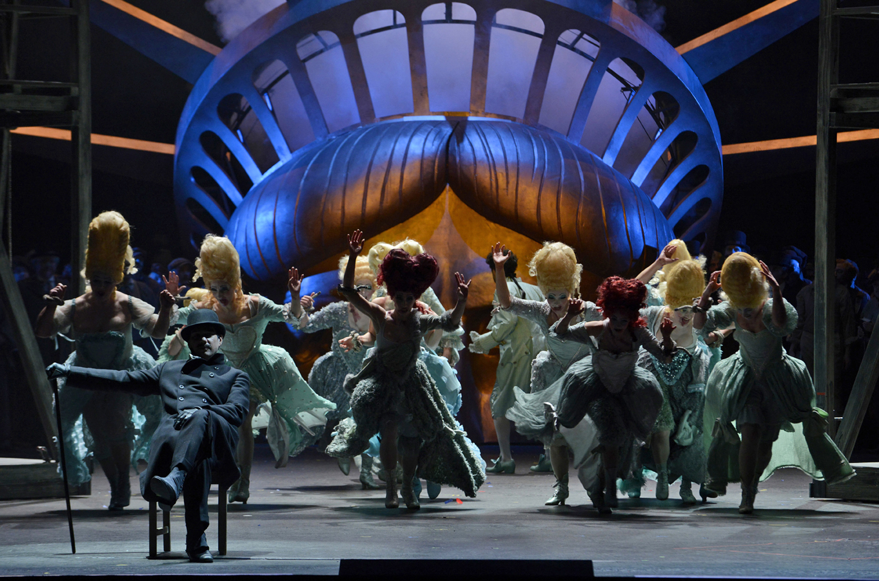 La producción escénica es una colaboración de los teatros de ópera de Graz y Dresde, habiendo sido estrenada en la ciudad austriaca en Octubre del año pasado para recalar en Dresde hace 3 meses, aprovechando que Christian Thielemann dirigía la ópera. La producción lleva la firma de uno de los hombres de teatro de moda en la actualidad, el noruego Stefan Herheim, que cuenta con una auténtica legión de admiradores, que parecen competir entre ellos en sus alabanzas y en quién es el que mejor ha entendido el trabajo de su ídolo. Yo no comparto la admiración hacia alguien al que hay que interpretar a fondo para disfrutar con su trabajo. La obligación de un director de escena es narrar la historia – muchas veces, su historia – de manera comprensible. Si no se entiende, la culpa es del autor y no del espectador. La ópera no es física cuántica.