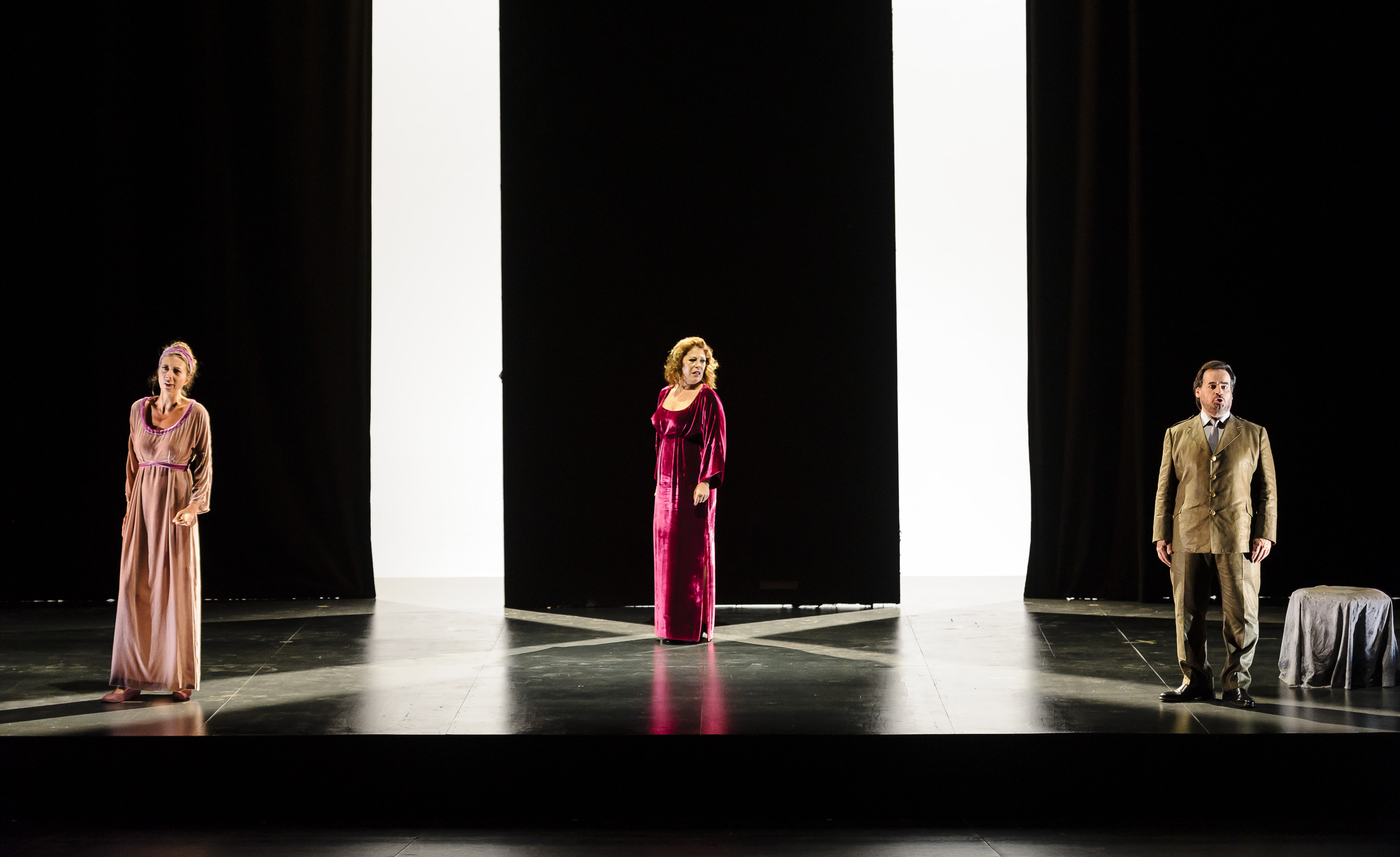 La aquí anunciada como producción escénica no es sino la que pudimos ver en la temporada pasada en Oviedo. En aquella ocasión no pude sino alabar el trabajo que se hizo por parte de Susana Gómez, ya que consiguió con imaginación y escasos medios hacer una versión semi escenificada de lo que estaba anunciada como pura versión de concierto. En Perelada, sin embargo, no ha habido ningún anuncio de ser una versión de concierto, sino que se ha vendido como una producción escénica procedente de la Ópera de Oviedo. Tanto en un caso como en el otro estamos hablando del mismo espectáculo escénico, que, si resultaba encomiable en la capital asturiana por ofrecer más de lo anunciado, aquí ocurre todo lo contrario. Al estar anunciado como producción escénica, todo hacía suponer que se había enriquecido lo visto en Oviedo, pero no ha sido así.