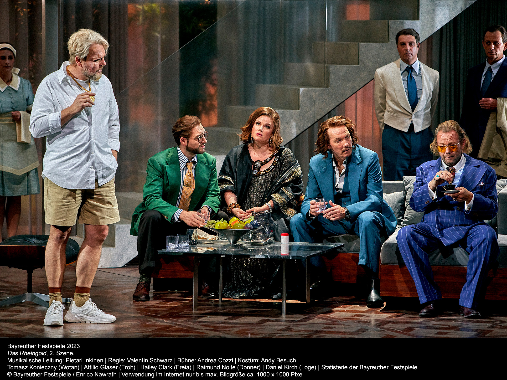 Festival de Bayreuth 2023. Wagner: El oro del Rin. La Valquiria. Reparto: Tomasz Konieczny (Wotan), Christa Mayer (Fricka), Ólafur Sigurdarson (Alberich), Arnold Bezuyen (Mime), Daniel Kirch (Loge), Catherine Foster (Brunilda), Elisabeth Teige (Sieglinde), Klaus Florian Vogt (Siegmund), Georg Zeppenfeld (Hunding). Dirección escénica: Valentin Schwarz. Escenografía: Andrea Cozzi. Vestuario: Andy Besuch. Iluminación: Reinhard Traub. Dirección musical: Pietari Inkinen. Lugar: Festspielhaus de Bayreuth. Fechas: 5 y 6 agosto 2023.