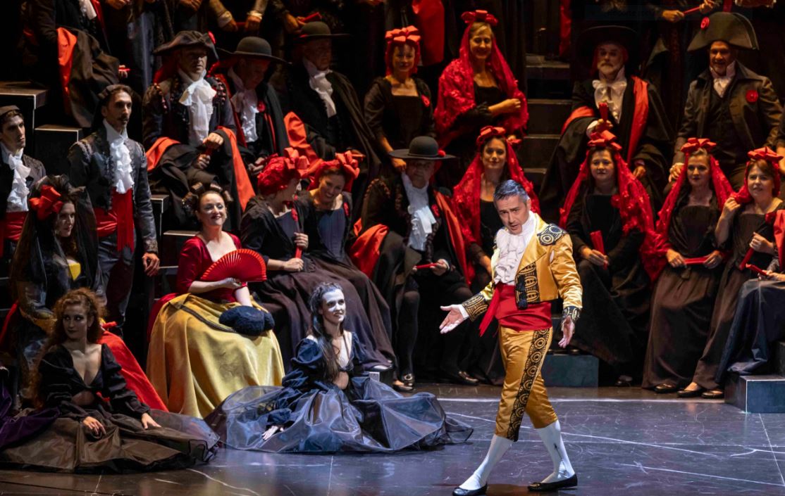 En el casi multitudinario reparto vocal (a lo Maestros Cantores o El caballero de la rosa) destacó la vocalidad rotunda y presencia escénica del barítono Borja Quiza, un Capitán Peñaranda que representa los mejores valores de la maltratada piel de toro. El barítono gallego, que ya dejó constancia de su categoría como intérprete de Barbieri en El barberillo de Lavapiés que protagonizó en el mismo escenario en abril de 2021, conoce sus mejores cualidades y las proyecta con inteligente eficacia. Paisana de Goya, la soprano aragonesa Ruth Iniesta dio vida a Doña Pepita y dejó entrever las agilidades de su versátil y bien regida voz de lírico-ligera. Puso de relieve sus cualidades belcantistas en el formidable dúo con la Princesa de Luzán, su rival política -la “otra” España-, encarnada por la mezzo barcelonesa Carol García, estupenda en la lograda romanza “Este santo escapulario”. Ella y la Iniesta parecieron casi casi emular a la Caballé y la Bumbry en este dúo de altos vuelos que parece pariente del de Norma y Adalgisa en el segundo acto de la ópera maestra de Bellini.
