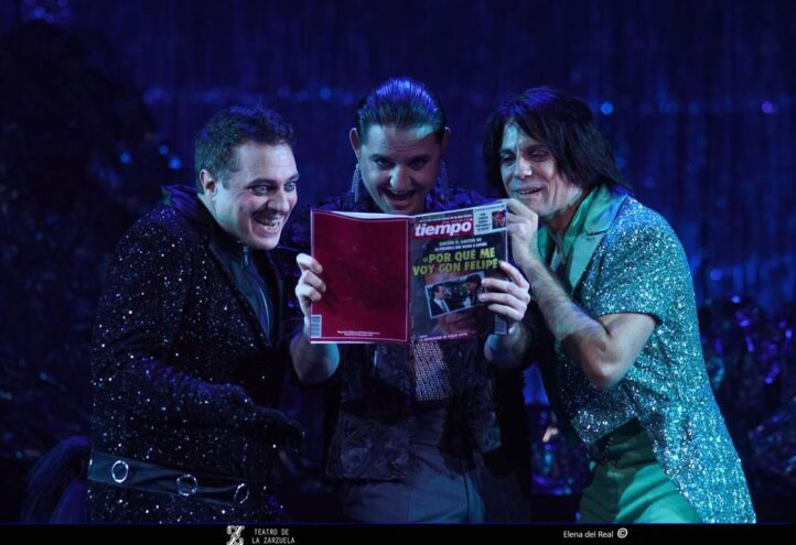 Al escenario de Villalobos suben Sofico, Rumasa, Mario Conde, Jesús Gil, Rita Barberá y los convolutos del socialismo chic de los noventa, aunque no el cutrerío del de hoy, de manera que la corrupción se nos presenta más o menos empatada. El desempate lo llevó a cabo el día del estreno el juez Peinado con solo sentarse en la cuarta fila. En el original hay atisbos de emancipación femenina que Villalobos actualiza homenajeando a las artistas noventeras: Rocío Jurado, Sara Montiel, Lina Morgan, Bárbara Rey, Rafaella Carrà…