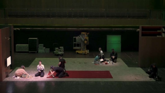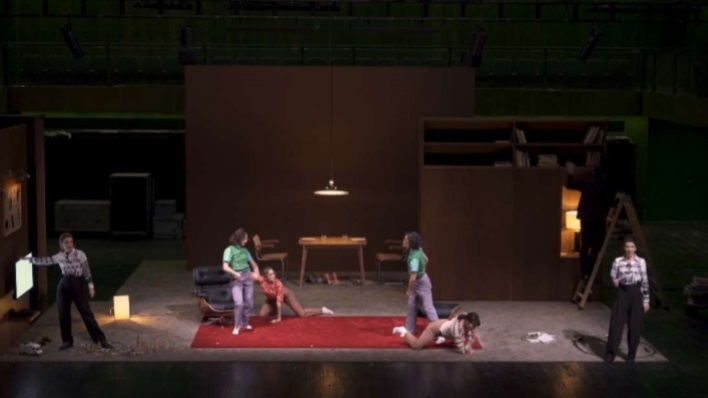 Para este estreno en Madrid se nos ha ofrecido una producción, que es una colaboración del Teatro Real, los Teatro del Canal y la compañía teatral La Veronal. La producción resulta un tanto extraña, ya que nos ofrece un escenario desnudo al inicio de la ópera y es durante su desarrollo cuando se van añadiendo elementos escénicos a base módulos, llegando al final de la misma con una mansión moderna ya montada en su cuarto de estar, con sus sillas, mesas y aparatos de televisión, donde evolucionan las cantantes y un grupo de 4 bailarinas, aparte de algunos extras. La producción se debe al valenciano Marcos Morau, que forma parte de La Veronal.