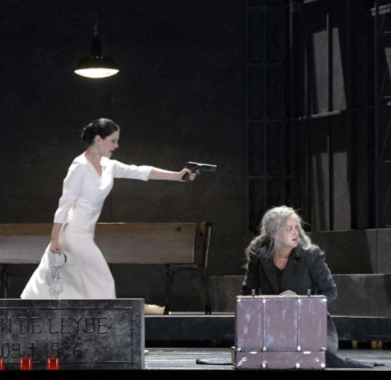 Para la ocasión la Deutsche Oper ha repuesto la producción del francés Olivier Py, que se estrenara en noviembre de 2017 y que tuve ocasión de ver entonces. Trae la acción a tiempos modernos, convirtiendo al Conde Oberthal en un tirano al uso. Esta transposición no aporta nada, ya que la el argumento no casa bien con tiempos actuales y la trama tiene poco sentido fuera de su época histórica. En conjunto, su labor me ha resultado adecuada y hasta atractiva en algunas partes de la ópera, aunque no pueden faltar excesos, muy habituales en las producciones del francés, que no sirven sino para emborronar gratuitamente su labor. Los excesos son evidentes en el famoso Ballet de los Patinadores del tercer acto y en la escena final. El ballet parece tener por cometido exponer los excesos de las guerras en relación con violencia, siendo el autor de la coreografía el mismo Olivier Py. En la escena final no tiene mejor idea el regista que ofrecer por detrás una serie de figurantes totalmente desnudos, dedicados a los placeres del sexo, lo cual nada aporta y no sirve sino para que el respetable se distraiga de lo realmente importante, que es el desenlace final de la ópera.