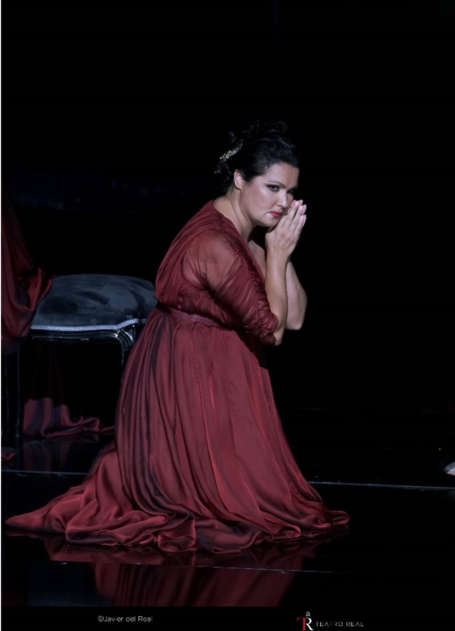 La representación que nos ocupa ha ofrecido un reparto totalmente nuevo respecto de toda la serie de las anteriores, ya que a la presencia de la gran diva rusa se une la de su marido Yusif Eyvazov y la del barítono italiano Luca Salsi. El resultado de la representación ha sido bueno, destacando particularmente un segundo acto magnífico, de los que pueden quedar para el recuerdo de los aficionados.