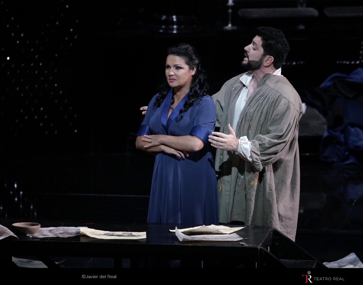 El Teatro Real ha programado la terminación de la actual temporada de ópera con unas representaciones extraordinarias de Tosca, ya que se han añadido 4 con la presencia de dos divos indiscutibles de la actualidad, como es el caso de Anna Netrebko y Jonas Kaufmann. No solamente se trata de su presencia en estos repartos, sino también del hecho de que se trata casi del debut de estos artistas en el Teatro Real, donde hace nada menos que 20 años que actuaron por una única vez y después no han vuelto sino para actuar en recitales o conciertos.