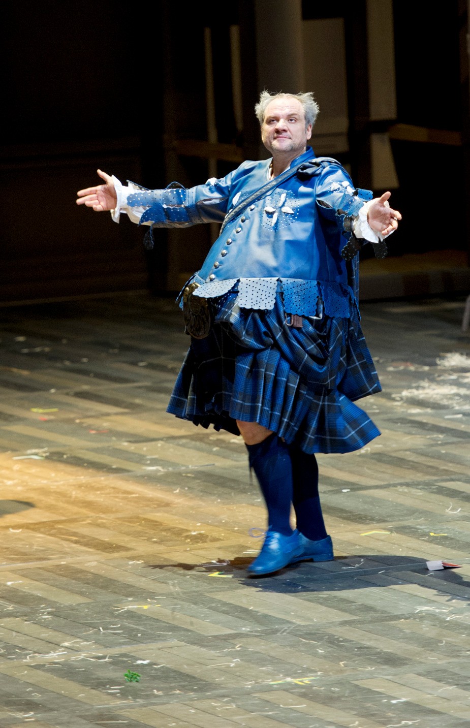 El barítono serbio Zeljko Lucic es una auténtica institución en Frankfurt y es evidente que el público le adora. Su Falstaff resultó muy exagerado, siguiendo supuestamente las indicaciones del director de escena, aunque él parecía muy divertido con las chanzas infantiloides que nos ofrecía en escena. Su voz, especialmente en el primer acto, tenía dificultades para llegar con claridad a la audiencia. No creo que Falstaff sea uno de sus mejores personajes y habría que verle en circunstancia muy distintas para poder valorarle debidamente.
