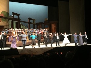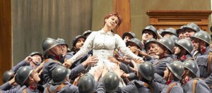 La ópera pasó de no gustar mucho en la premier a ser éxito mundial, en gran parte debido a la talla de sopranos –Lind, Patti, Sembrich, Tetrazzini, Sutherland, etc- y tenores –Valetti, Pavarotti, Kraus, Blake etc- que la han cantado. Obviamente carece de sentido programar obras así si no se cuenta con un gran reparto. El papel de Marie es mucho más endiablado de lo que parece, plagado de coloraturas y sobreagudos sin esa página de claro lucimiento espectacular con nueve “does” que posee su pareja. Pelly la hace además actuar de verdad y no es fácil combinar ambas cosas. Aleksandra Kurzak es soprano ligera de voz no especialmente grata, pero musical, con facilidad arriba y, además, actriz. El mejicano Javier Camarena fue protagonista hace pocos meses de uno de los escasísimos bises en el Met, precedido en décadas sólo por Pavarotti y Flórez. A medio camino entre ambos en lo vocal y en lo físico, sabe proyectar e impresionar con la célebre pieza, así como frasear intachablemente el “Pour me rapprocher de Marie”. Un cantante de fuste y el más aplaudido de la velada. Pietro Spagnoli y la aún inmensa Ewa Podles –la más auténtica contralto en décadas- resuelven de forma excelente y cómicamente, como corresponde, los papeles de Sulpice y Berkenfeld, mientras que Angela Molina no llega a convencer como Krakenthorp.
