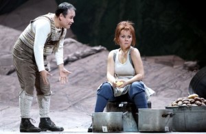 Por contraste, con la presencia de Ewa Podles se accedía a la voz de contralto en su máxima pureza. Su línea de canto no tiene el esplendor de antaño, pero su voz sigue cautivando. Encuanto a los valores teatrales desde el canto alcanzan su exponente más destacado en Pietro Spagnoli, con una comicidad natural y de buena ley. El veterano Bruno Campanella arropa con su experiencia todo el entramado vocal y la representación fluye musicalmente con esmero, confianza y seguridad, aunque sin excesiva brillantez. La puesta en escena de Laurent Pelly es correcta, lo cual no es poco en una ópera teatralmente casi imposible. Su mayor mérito es la dirección de actores, a nivel individual y colectivo, y la principal objeción es la simplicidad, con un enfoque caricaturesco que no despega el vuelo de lo previsible. Una actriz tan estupenda como Ángela Molina, que sustituía a la anunciada Carmen Maura, pasa sin pena ni gloria, con una sosería a flor de piel de la que también es en parte responsable el director de escena.