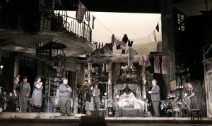 Otra cosa ha sido, en esta rara noche, la representación de “Gianni Schicchi”, que Allen decidió situar en la Florencia de los años 50 o 60 del siglo XX, adelantando así la acción unos cuantos centenares de años. Todo sucede en un ático ruinoso desde el que se divisan las cúpulas de la ciudad. Las idas y venidas están bien resueltas, con agilidad y ritmo cinematográfico, que es el que posee en realidad esta obra maestra. Hay detalles originales, como la misma presentación en una pantalla. Lo más sonado es el cierre: Schicchi es acuchillado por Zita, una de las familiares del finado Buoso, lo que en principio no casa muy bien con el texto final. Pero Allen ha visto que en esas líneas se dice: “por esta extravagancia se me ha lanzado al infierno…”