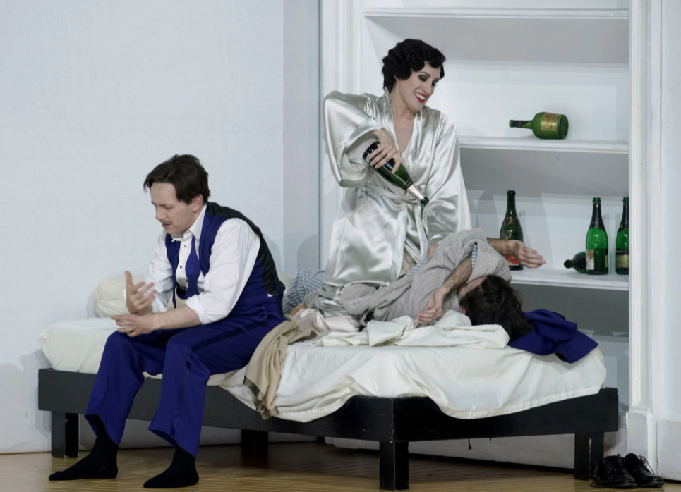 ¿Qué busca un espectador cuando asiste a una ópera barroca? Pienso que un espectáculo que le sea visualmente atractivo, que le ayude a entender los intrincados argumentos, una orquesta a ser posible en estilo y, sobre todo, voces que hagan justicia a las enormes dificultades. Lo logra en parte la actual propuesta del Teatro Real. Alden recurre a una dramaturgia paralela en la que la acción tiene poco que ver con la del libreto original, transportándose al París de los años 20 e inspirándose en la figura de la editora Nancy Cunard tras desechar a Teacher y otras figuras más populares. Podrían llenarse páginas discutiendo filosóficamente coincidencias entre Partenope y Cunard y cómo Alden las resalta e incluye miles de detalles adicionales como los guiños a las fotografías de Man Ray y otros muchos que son imposibles de reconocer por el gran público. Trabajo inútil para el espectador medio, que sólo serviría para mi pompa personal. El caso es que Alden crea un espectáculo atrayente, lleno de ingenio hasta en el mal gusto de colocar un retrete en la escena, lejano a la idea original, muy difícil de entender y que exige que los cantantes sean auténticos actores, llegando a la acrobacia mientras cantan. Sucede como con el estrafalario “Don Carlo” de Konwitschny, que el profundo trabajo resulta admirable y atrae por encima de las críticas que puede suscitar.