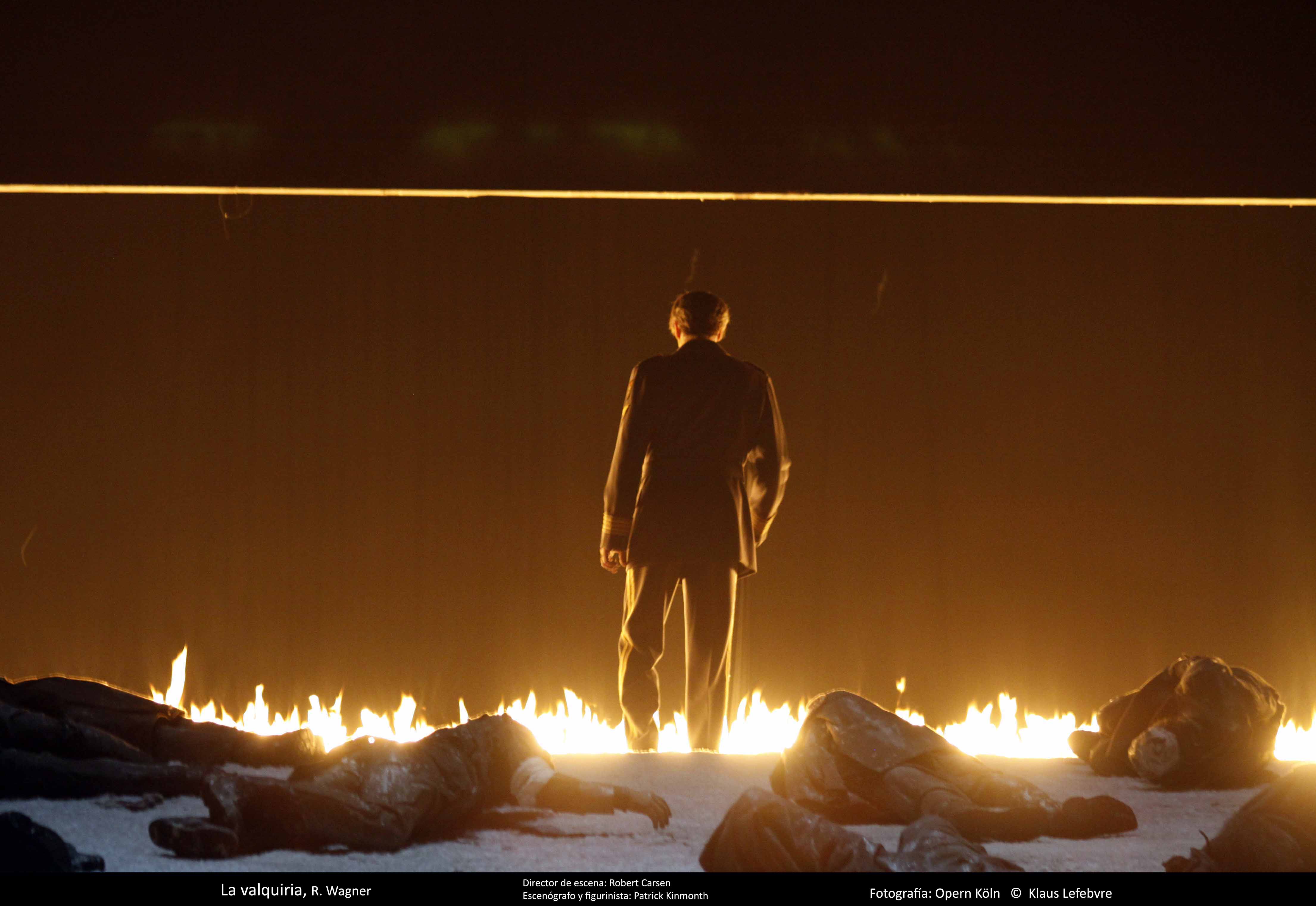 La puesta en escena de Robert Carsen, estrenada en Colonia en 2010, es difícil de juzgar ya que habrá que conocer el ciclo entero para poder opinar con seriedad. No se entendía, por ejemplo, la nieve en “El oro del Rin” y es ahora cuando se comprende su sentido, en la explosión del acto primero de “La Valquiria”. Digamos por tanto sólo un par de cosas. No ofende y resulta visualmente atractiva en algunos momentos. Así la imagen de soledad en el maravilloso dúo entre Brünnhilde y Siegmund del acto segundo e incluso en su primera escena en el Walhalla. Por el contrario no encuentran su sentido aspectos como la espada o la tardanza en aparecer el fuego que rodea a la inexistente roca donde ha de quedarse Brünnhilde. A veces no cuadran escena y texto, pero esto es algo a lo que ya nos hemos acostumbrado en las puestas en escena actuales.