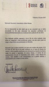 Hoy también se ha conocido la apertura del juicio oral, prevista para primeros de 2018, a los imputados en el caso Palau: Helga Schmidt —para quien el fiscal solicita siete años y medio de prisión—; el que ex director financiero del Palau Ernesto Moreno — ocho años de cárcel—; el presidente del consejo de administración de Patrocini —empresa del patrocinio del Palau de les Arts—, y otras cuatro personas más, acusadas de prevaricación, malversación y falsedad en documento mercantil.