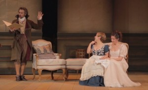 Mario Gas presentó esta producción en el Teatro Español en 2009, con el mismo Andrea Marcon también en el foso y la Orquesta Barroca de Venecia. También funciona bien la de la Comunidad de Madrid bajo la experta y viva dirección del maestro. Se nota que detrás de la escena, con decorados muy simples, hay un hombre de teatro. La dirección actoral salva un texto muy largo en su primera parte sin apenas acción y que sólo en el final de la segunda da entrada al enredo. Música que suena algo a Mozart y que en alguna ocasión avanza a Rossini, con una parte bastante endiablada para el tenor y en cambio de escasa enjundia para la Clementina. Juan Antonio Sanabria logra salvar Don Urbano, no sin algún problemilla en las coloraturas y las tres mujeres –Carmen Romeu, Vanessa Goikoetxea y Carol García- interpretan con solidez y gracia. Con ella también el equipo de actores. Una de las cosas más positivas de esta etapa del teatro es la presencia de directores musicales, cantantes y actores que saben cual es el papel de cada uno. Gonzalo Alonso
