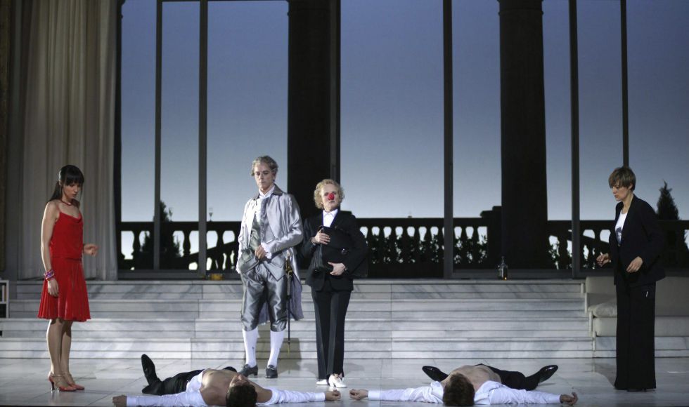 Posiblemente sea la primera vez en la temporada que el Real puede colocar el cartel “Todo vendido”, lo cual tiene su parte positiva y su parte negativa. La taquilla vendrá bien a sus arcas exhaustas, pero la puesta en escena de Tcherniakov puede acabar de desencantar a abonados y curiosos. El regista ruso, que sorprendentemente lleva ya dos producciones esta temporada, fue elegido en Aix-on-Provence en 2010 para romper con la etapa anterior de aquel festival, en la que en 1998 se había representado un “Don Giovanni” histórico a cargo de Peter Brook y Claudio Abbado. Lo consiguió a tenor de las críticas que suscitó. Mortier se apuntó a la producción y ayer la tuvimos en nuestro teatro.