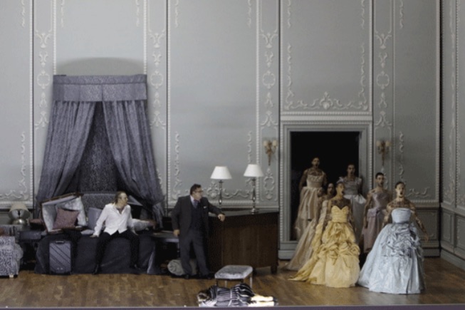 La producción escénica lleva la firma del australino Barrie Kosky, cuyos trabajos son siempre garantía de calidad e imaginación. Me llamaba poderosamente la atención que fuera él el responsable de esta nueva producción, ya que se trata del director de la Komisch Oper de Berlín, donde él estrenó la actual producción de esta ópera del también australiano Benedict Andrews, que ha sido un gran éxito desde entonces. No deja de ser curioso.