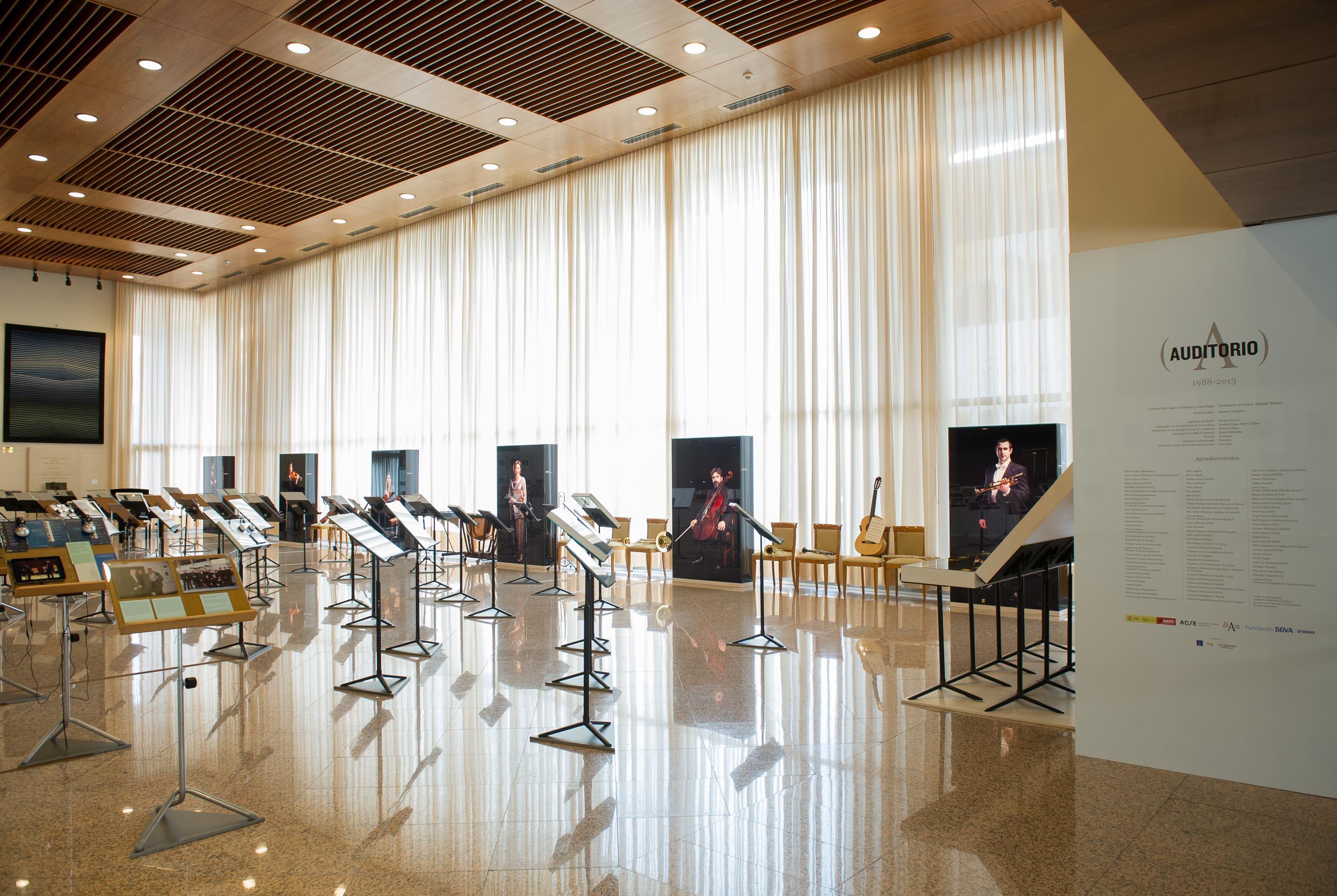 En Auditorio (1988-2013), destaca un gran plano de más de dos metros de largo y un metro de alto que descubre a escala el edificio y los diferentes espacios que lo conforman, recreando la actividad complementaria a la Sala Sinfónica y la Sala de Cámara. De igual forma, la exposición recuerda a todo el personal que ha trabajado para el Auditorio y recopila la aportación de los aficionados a la música que con sus relatos, dibujos y fotografías han participado en los distintos concursos que se convocaron en el último tramo de 2013 con motivo de este aniversario.